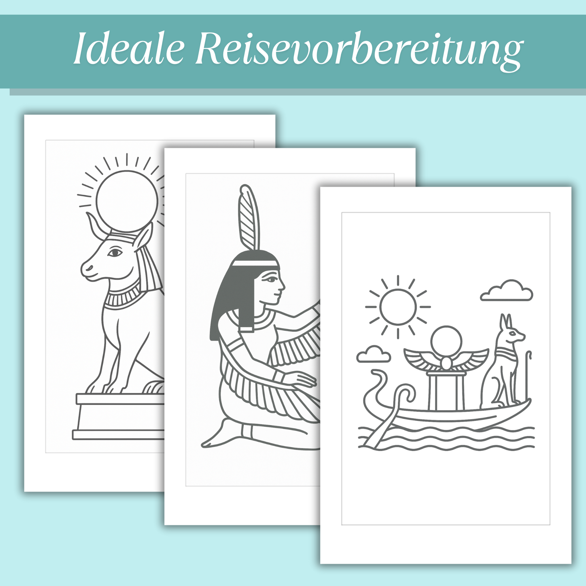 Abenteuer im Land der Pharaonen! Mit diesem liebevoll gestalteten Ägypten Malbuch als PDF tauchen Mädchen und Jungen ab 4 Jahren in die faszinierende Welt der Pyramiden, Tempel und Mumien ein. Ob zur Reisevorbereitung, als kreative Beschäftigung im Urlaub oder für kleine Ägypten-Fans zu Hause – dieses digitale Malbuch sorgt für spannende Unterhaltung und jede Menge Fantasie.