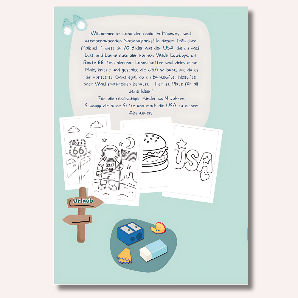 Ob als kreative Beschäftigung auf Reisen oder als Geschenk für kleine Abenteurer – mit „Mein USA Malbuch“ wird jedes Kind zum Entdecker.